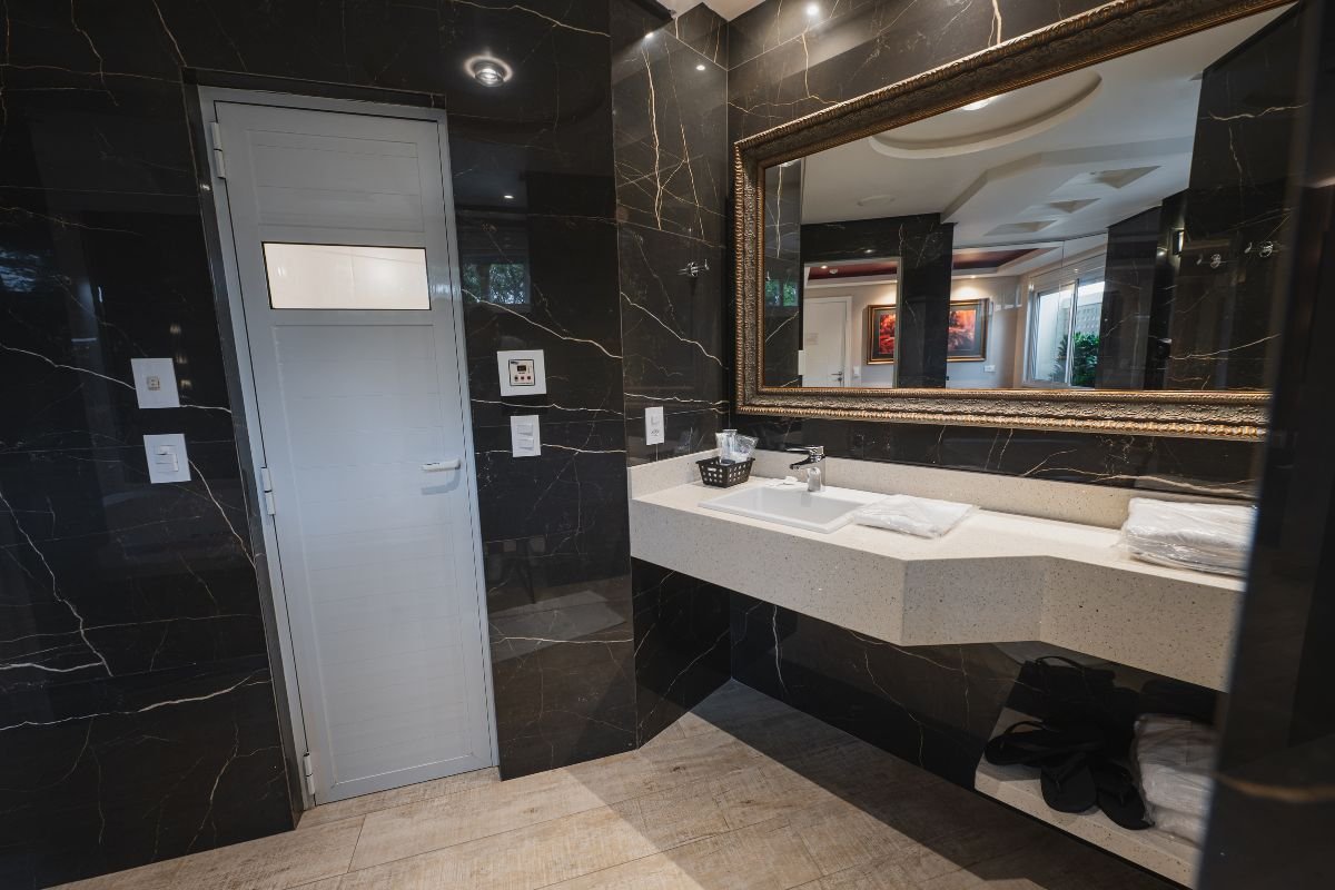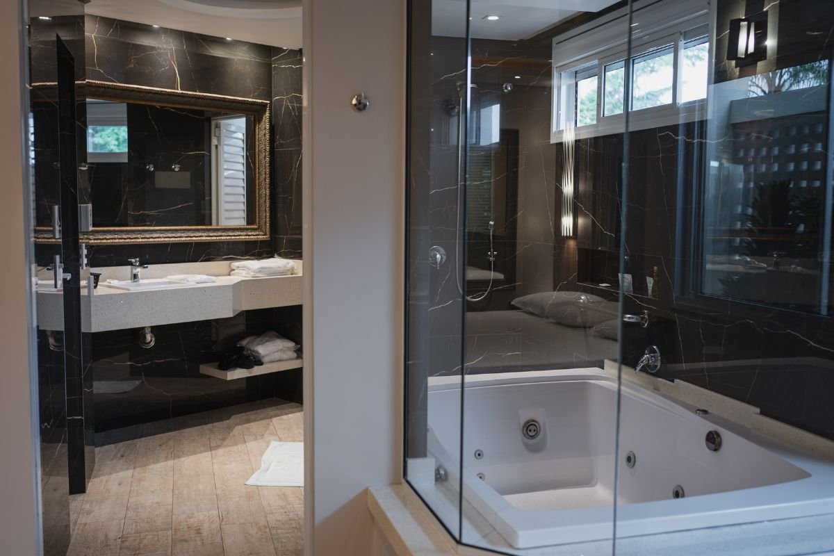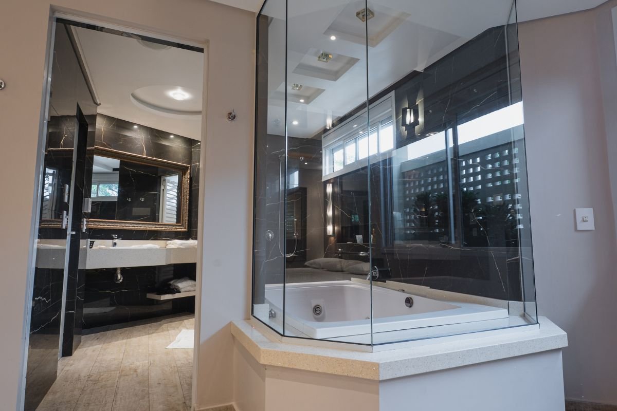Moderna e aconchegante, esta suíte foi projetada para oferecer conforto e privacidade em cada detalhe. A espaçosa hidromassagem de 1,20 X 1,80m convida ao relaxamento, enquanto a sauna úmida traz um toque de bem-estar e exclusividade.