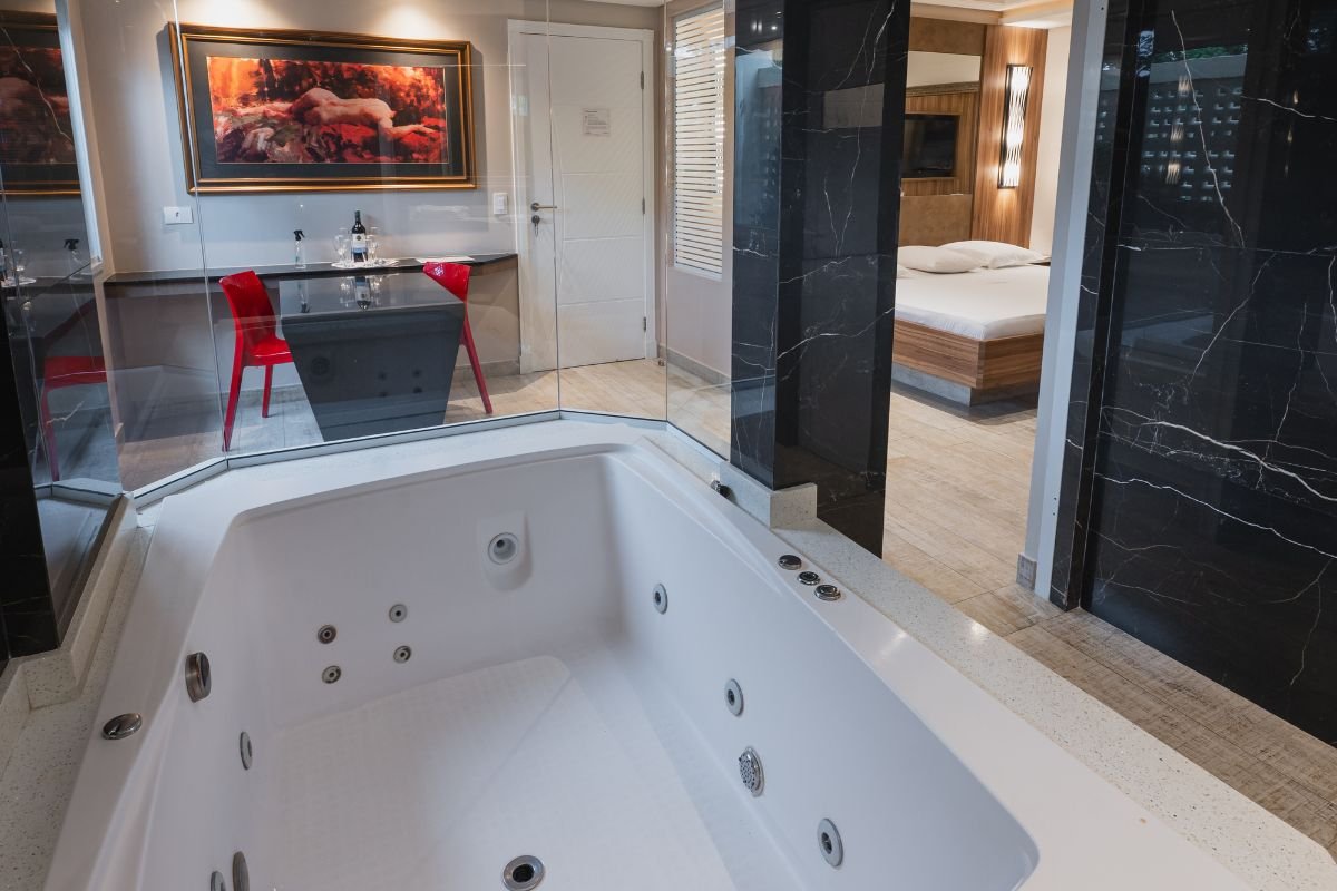 Para completar, a suíte dispõe de Wi-Fi gratuito e garagem privativa, assegurando comodidade e discrição durante a estadia.
