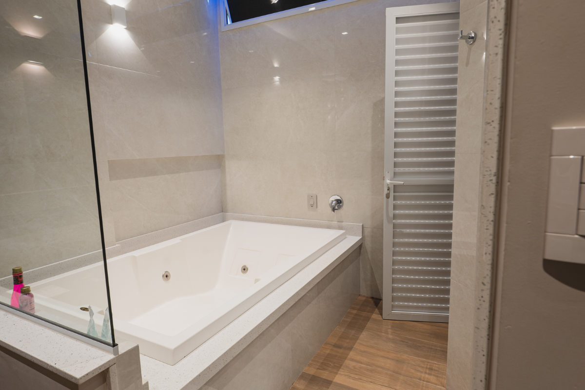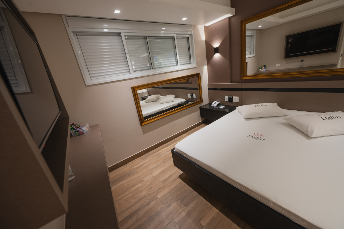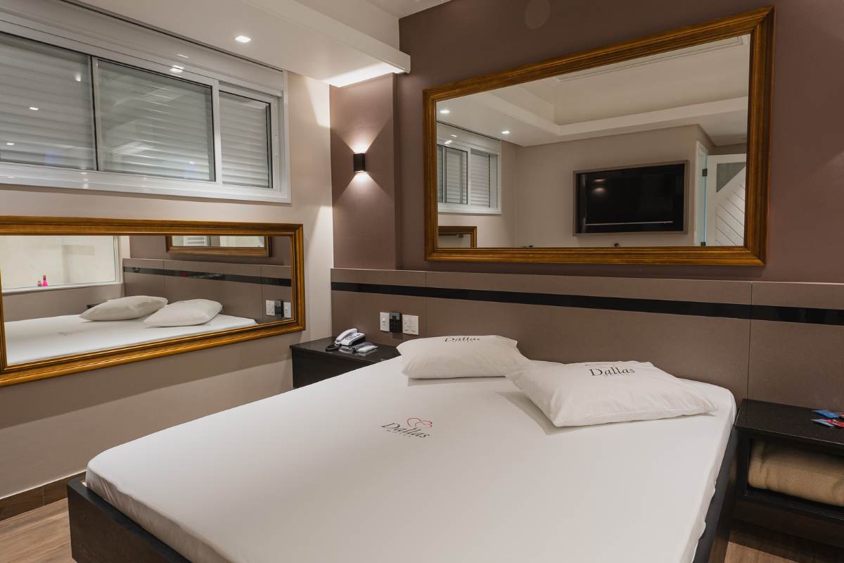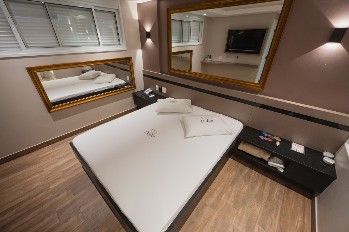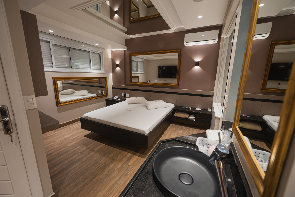 A hidromassagem é o ponto alto da suíte, ideal para relaxar e renovar as energias. O espelho no teto adiciona um toque de charme e sensualidade ao ambiente, enquanto o Wi-Fi gratuito e a garagem privativa completam a experiência com total conveniência e discrição.